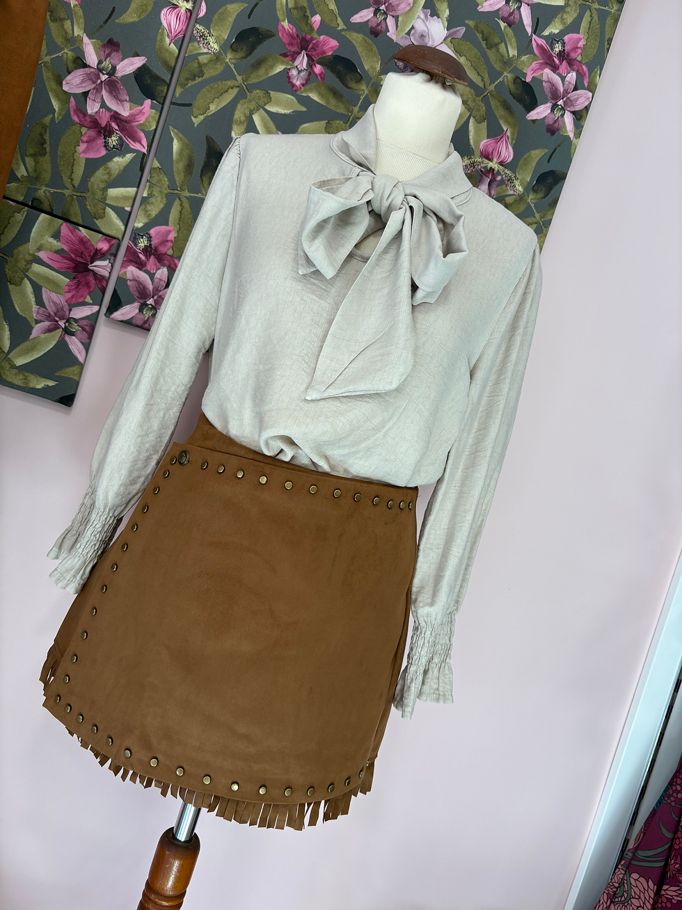 Falda flecos antelina camel